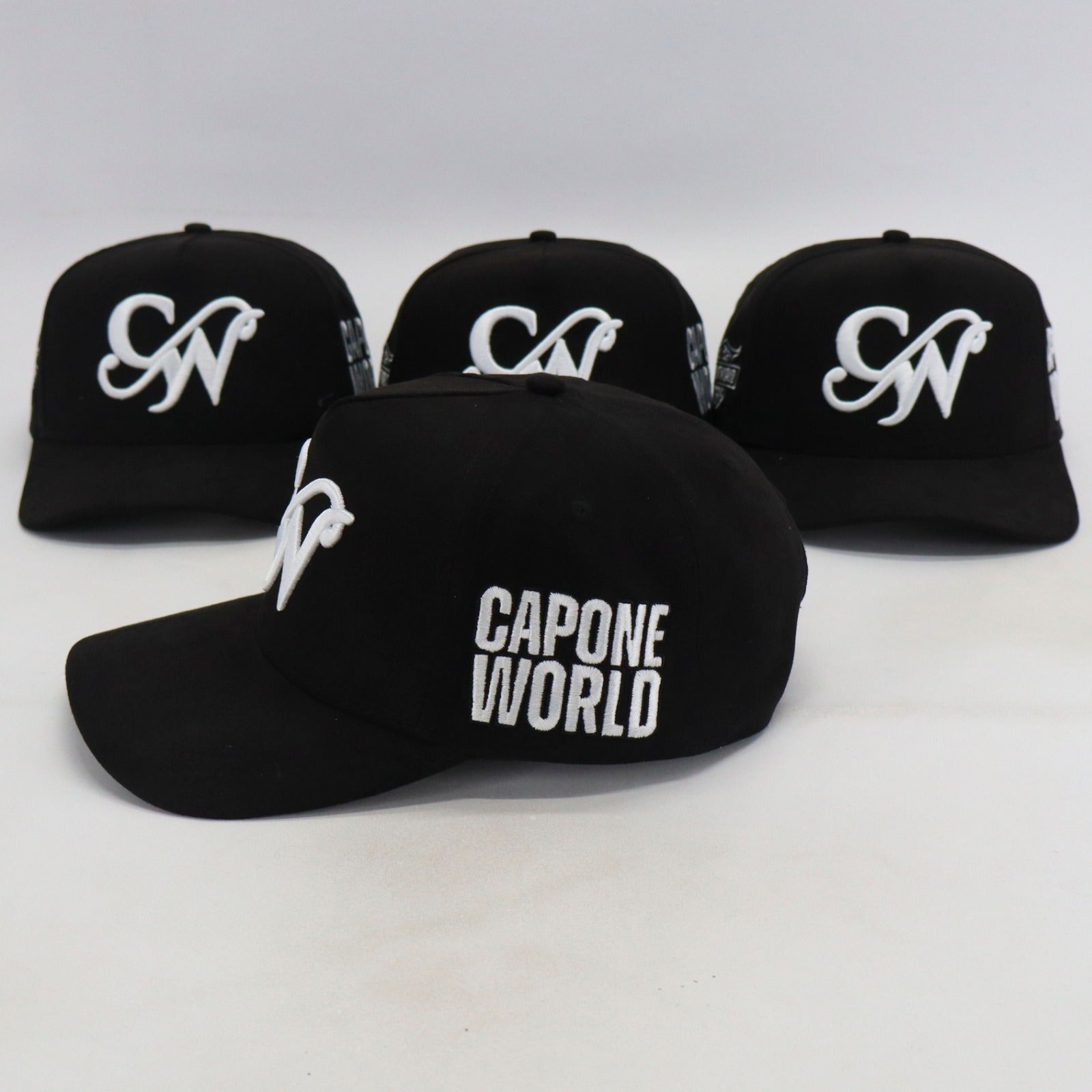 Level up your look with the Capone World Premium Suede Snapback. Featuring Black ultra-soft suede, this hat is all about elevated streetwear. The bold CW logo, “CAPONE WORLD” embroidery, and 2024 heritage patch speak to those who hustle with heart. Finished with a structured fit and adjustable snapback for all-day wear.
