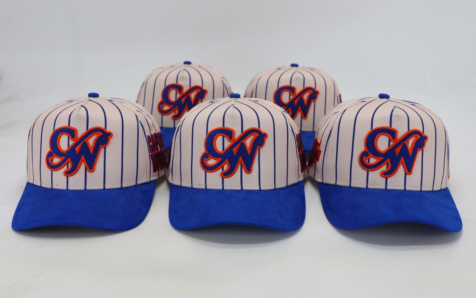PINSTRIPE ROYAL BLUE & ORANGE “CAPONE WORLD” SNAPBACK A-FRAME